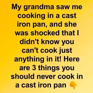 Certain foods shouldn’t be cooked in a cast iron skillet—like acidic dishes (tomato sauce, citrus-based meals) or delicate eggs—because they can react with the iron, altering flavor, damaging the seasoning, or causing sticking and uneven cooking.