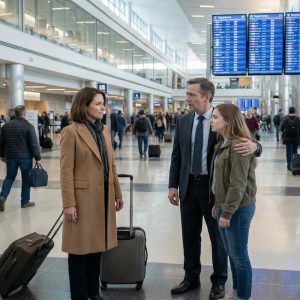 At the airport, I almost dropped my suitcase when I saw my husband’s arm around a younger woman’s waist, leaving me stunned, hurt, and uncertain about what to do next in that shocking moment.
