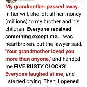 Everyone laughed when my grandmother left me five rusty clocks, seeing them as worthless. But when I opened the envelope, I discovered a hidden message and secrets that transformed the seemingly ordinary heirlooms into priceless treasures.