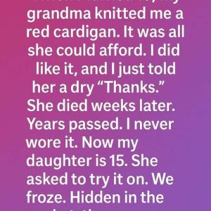 The red cardigan carries a hidden message of love, connecting generations through a heartfelt story that symbolizes family bonds, memories, and enduring affection passed down over time.
